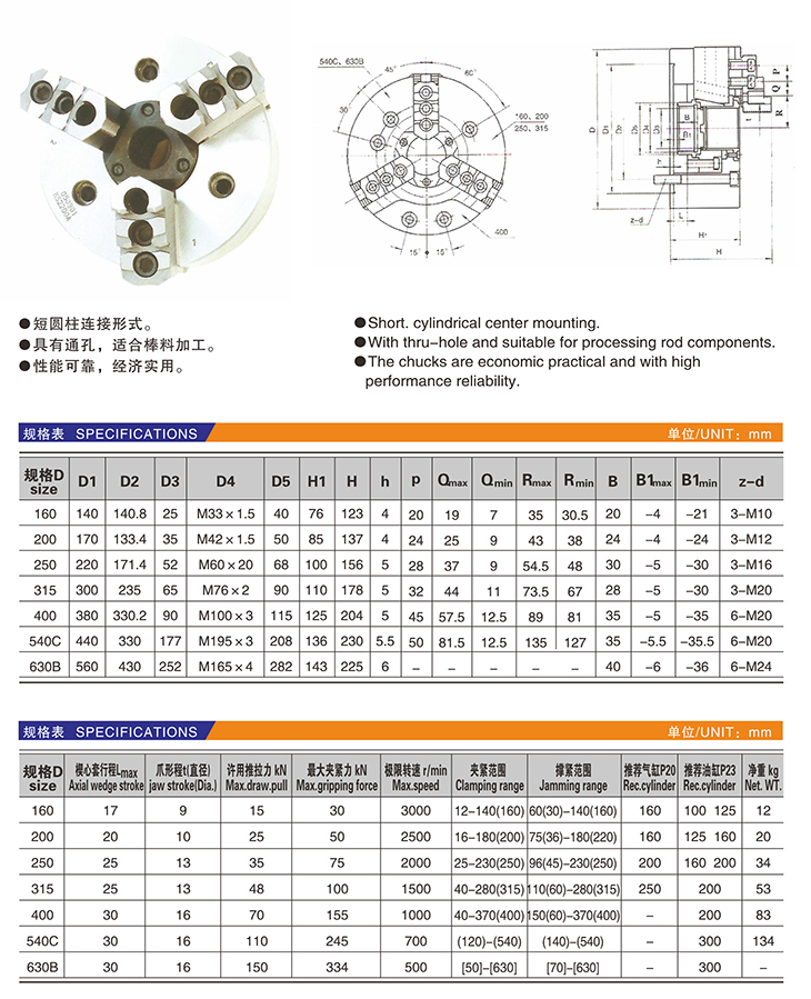 K52 楔形通孔动力卡盘