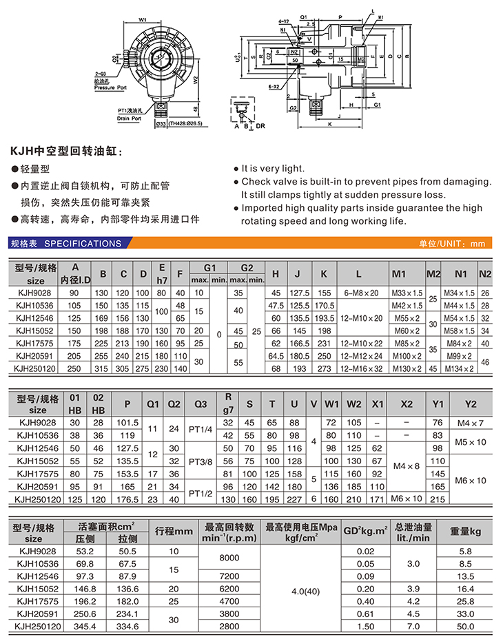 KJH 中空型回转油缸